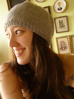 I just finished this hat in time for my camping trip in Bennington! I started and ripped it out five times!! (practically finishing each time too) I wish it was a little bit more floppy, but I can live. I just wanted a nice grey hat and I think I got it. I loosely followed the pattern for the Purl Beret.