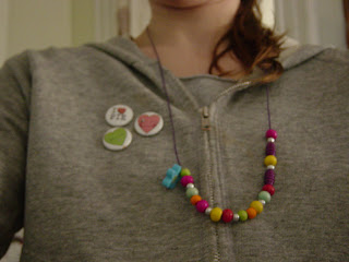I just finished a marathon baby-sitting day: 7:45 am -7:15pm! The usual suspects: Miss Eleanor in the morning and then her bestie Luke joined us in the afternoon. These are the only two children I take care of and I've been doing it for two years now, wow! They are now three, fastly approaching four... great ones...Here's the cool necklace of Eleanor's I got to wear all day! But I digress...