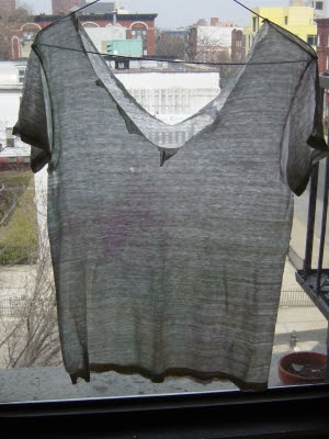 I though you might also get a kick out of this, my oldest article of clothing. Believe it or not, I made this tie dyed t-shirt when I was 12. It's totally see through, I've cut the collar off and you can't even tell it was once brightly colored. I only wear it to bed or to dance in and plan to keep it until it disintegrates!