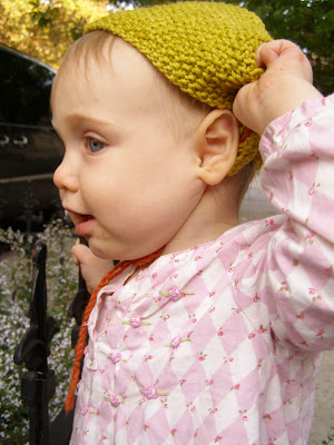 Eleanor, on the other hand, was much more obliging! Too bad I didn't have more in her size!! This harf actually is more for a grown up, but looks pretty great on her anyway.
