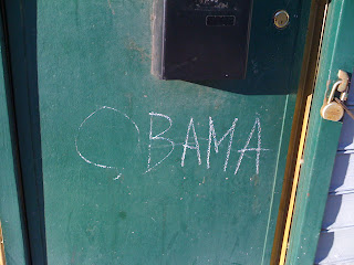 I've been taking for granted the fact that I pretty much live in a triple pro-Obama town, have quadruple-pro-Obama pals and practically see his face on every surface from fenders to fanny packs. (ok I didn't see a fanny pack, but how cool would that be?)